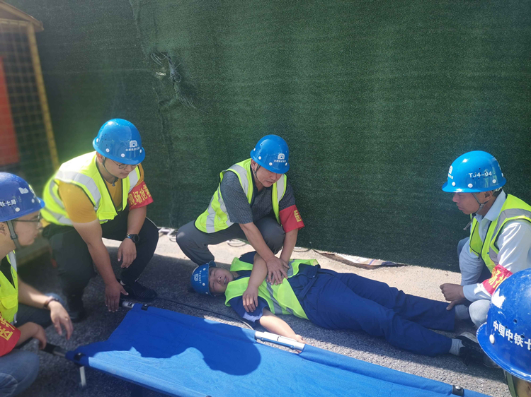6月21日上午,六公司合肥軌道交通4號(hào)線4標(biāo)25名管理人員在該項(xiàng)目呈坎路站舉行觸電演練活動(dòng),中鐵七局合肥軌道交通4號(hào)線4標(biāo)項(xiàng)目人員及項(xiàng)目監(jiān)理參與。