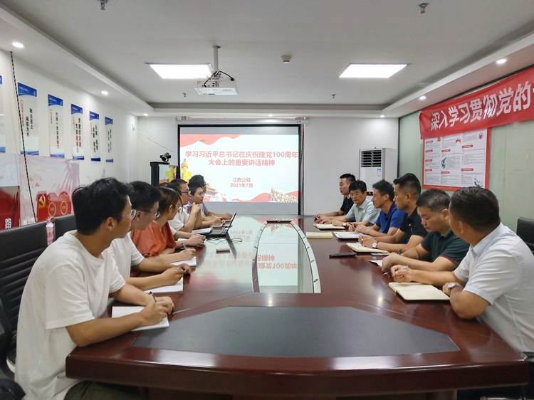 7月13日,江西公司黨支部組織機(jī)關(guān)全體人員深入學(xué)習(xí)習(xí)近平總書(shū)記在慶祝中國(guó)共產(chǎn)黨成立100周年大會(huì)上的重要講話精神。
