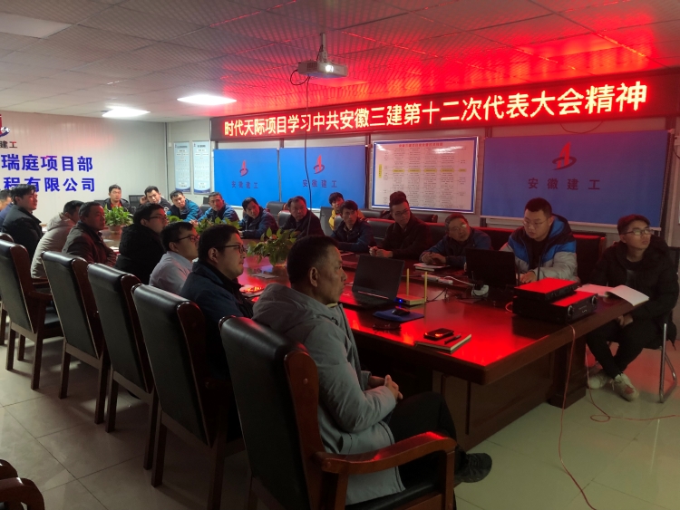 十二公司小機(jī)關(guān)、肥東振興EPC項(xiàng)目、蒙城高速項(xiàng)目組織學(xué)習(xí)公司兩委報(bào)告,圖為肥東振興EPC項(xiàng)目。
