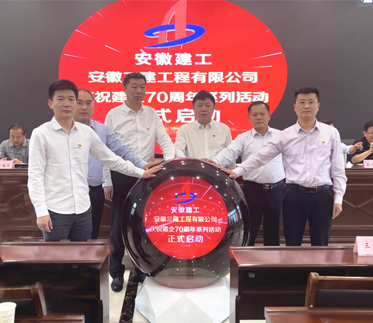 隨后,公司黨委書記、董事長何洪春,公司黨委副書記、總經(jīng)理徐少華,黨的十七大代表、全國勞動模范、建機公司黨總支書記李朝進,企業(yè)標兵、優(yōu)秀共產(chǎn)黨員、蕪湖公司陳鵬,十佳項目經(jīng)理、優(yōu)秀共產(chǎn)黨員、八公司謝克寶,企業(yè)標兵、優(yōu)秀項目經(jīng)理,裝飾公司涂濤,共同按動水晶球,宣布公司“慶祝建企七十周年”活動正式啟動。