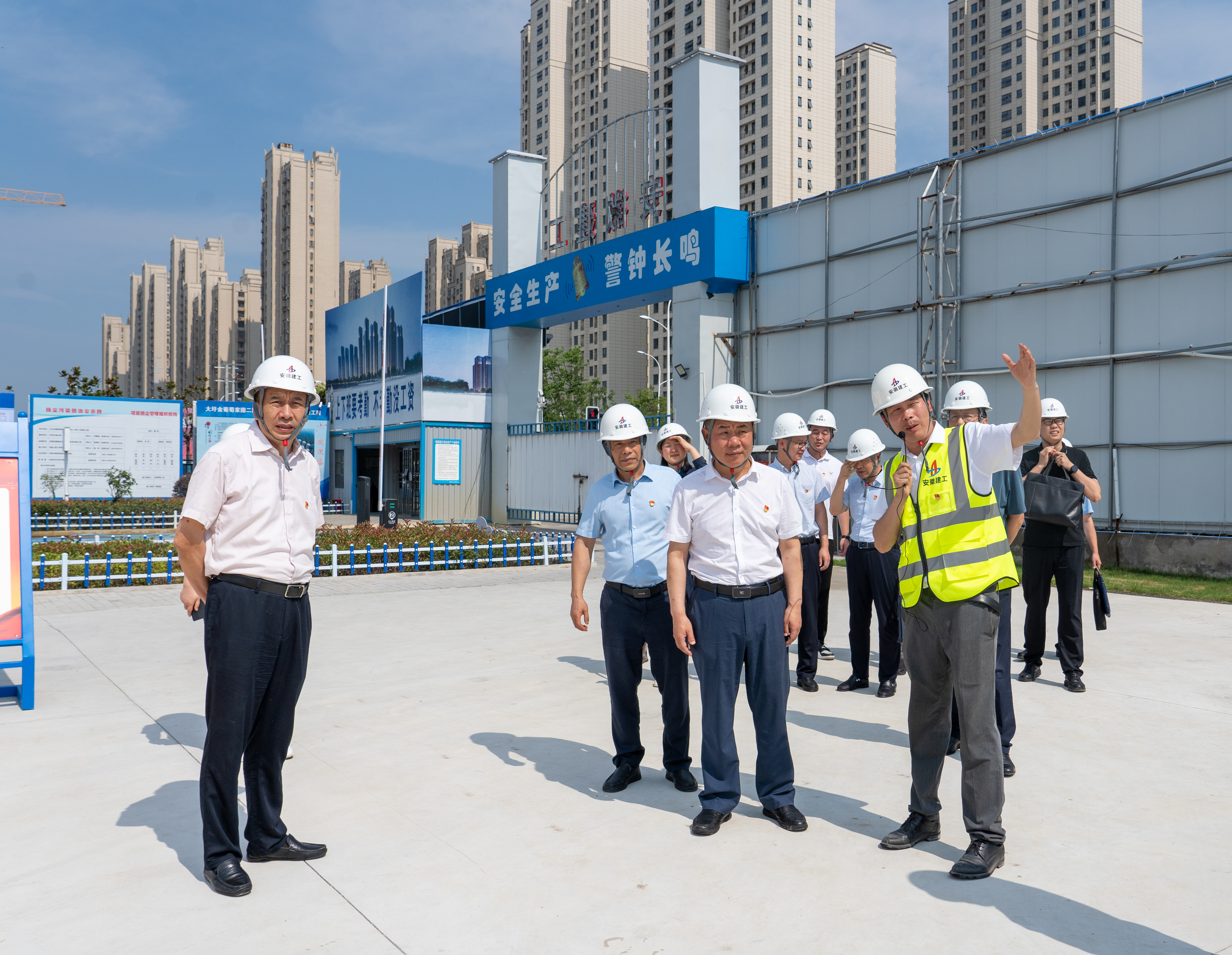 段海一行先后深入項目現(xiàn)場和黨員活動室,對項目樣板展牌、智慧展廳、鋁模爬架、裝配式等新技術(shù)、新工藝以及基層黨建活動開展情況進(jìn)行觀摩和了解,對項目生產(chǎn)經(jīng)營工作和“彩虹扣”黨建品牌、黨員1+N監(jiān)督崗等特色活動的開展表示肯定。