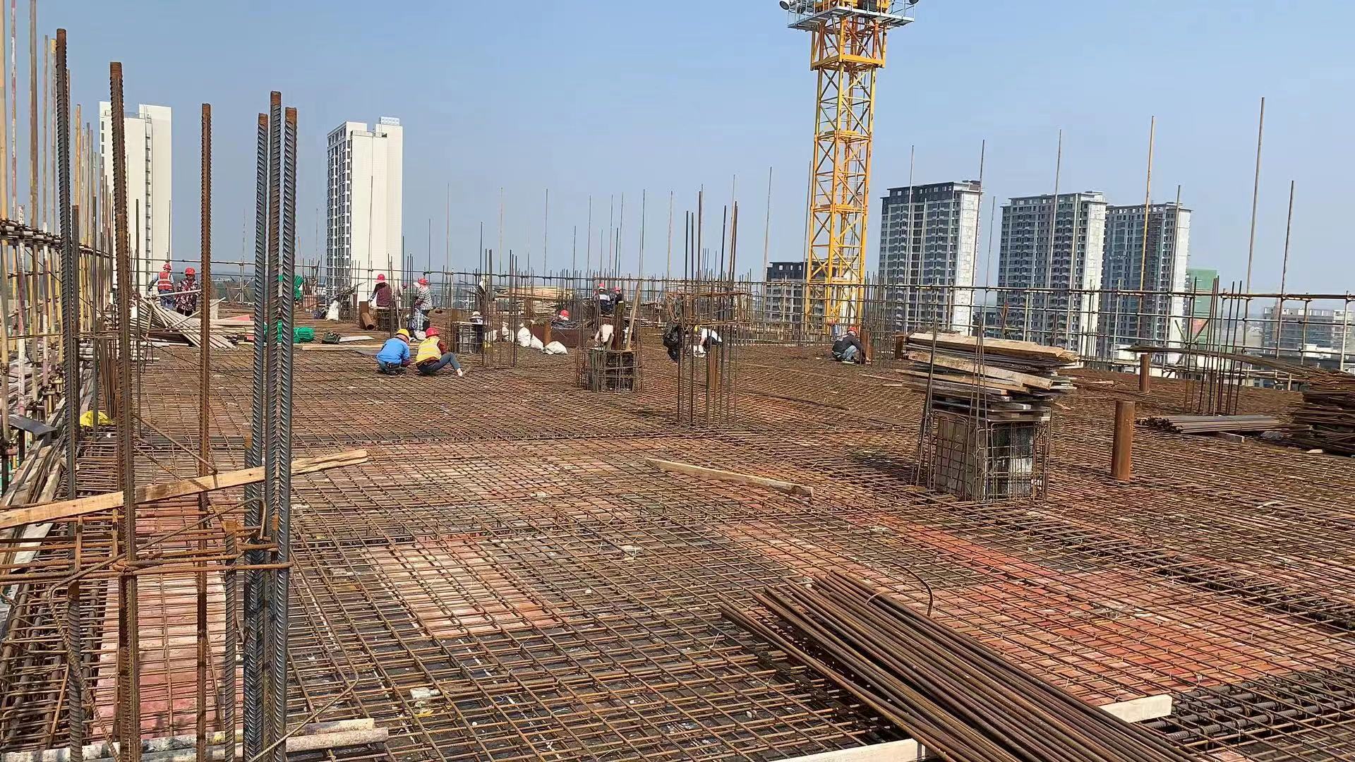 圖為建工三建集團(tuán)蕭縣鳳城醫(yī)院項(xiàng)目綁扎鋼筋施工現(xiàn)場(chǎng)