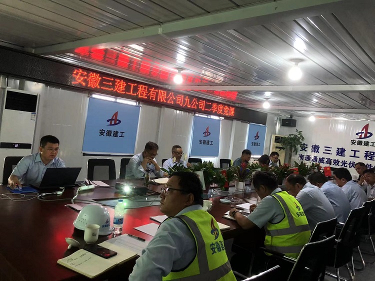 為推動學(xué)習(xí)貫徹習(xí)近平新時(shí)代中國特色社會主義思想主題教育走深走實(shí),近日,九公司黨支部書記陸軍前往南通通威高效光伏組件制造基地項(xiàng)目開展學(xué)習(xí)貫徹習(xí)近平新時(shí)代中國特色社會主義思想主題教育專題黨課。