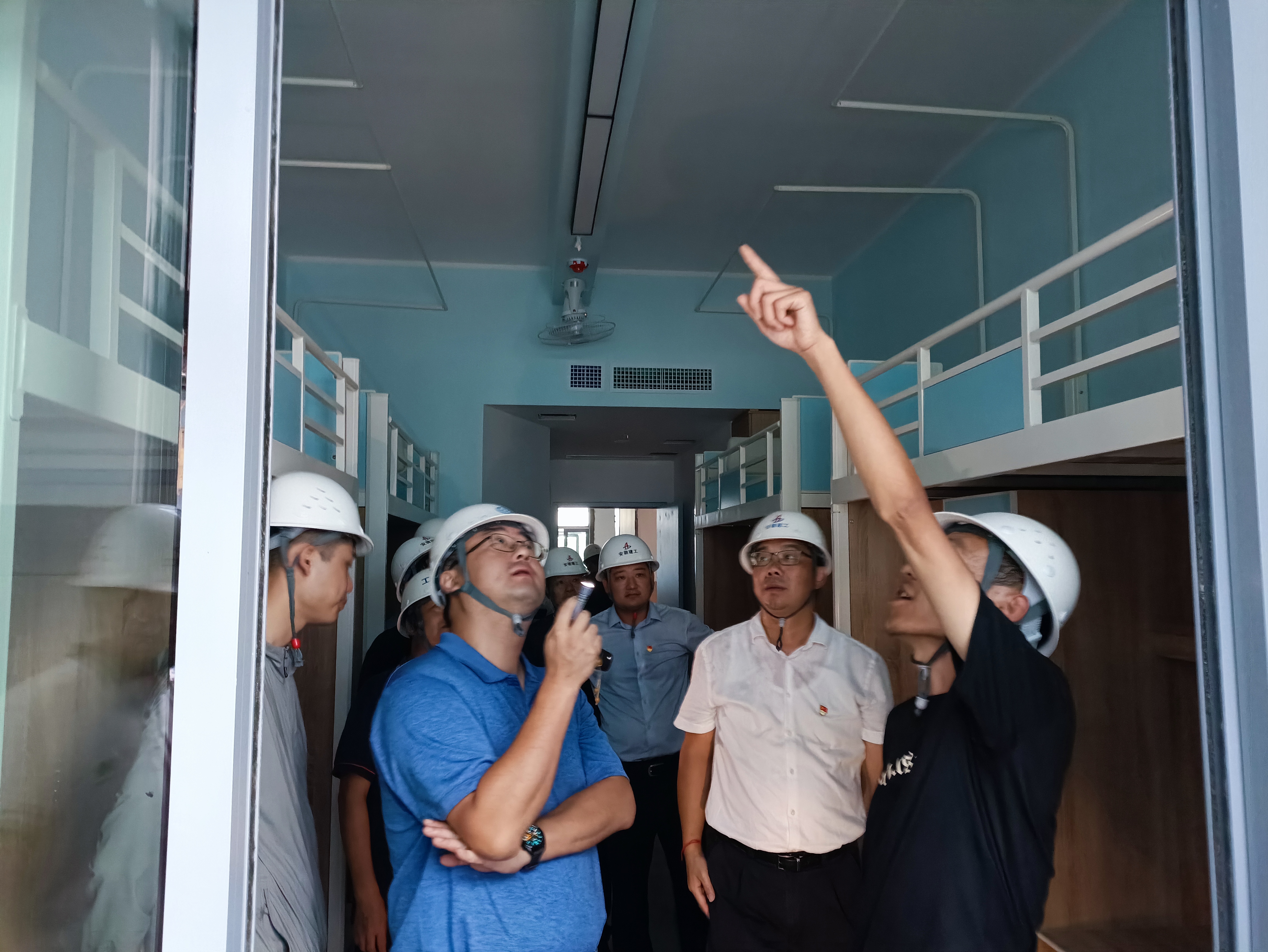 胡晨一行參觀了宿舍區(qū)裝飾樣板區(qū),聽取了裝飾公司項目負(fù)責(zé)人對宿舍樣板區(qū)的詳細(xì)介紹,了解了項目施工進(jìn)度、安全文明以及施工質(zhì)量等情況,對項目建設(shè)現(xiàn)階段工作取得的成果給予肯定。胡晨一行還對學(xué)生宿舍、教師宿舍、宿舍過道等裝飾效果進(jìn)行了定樣。