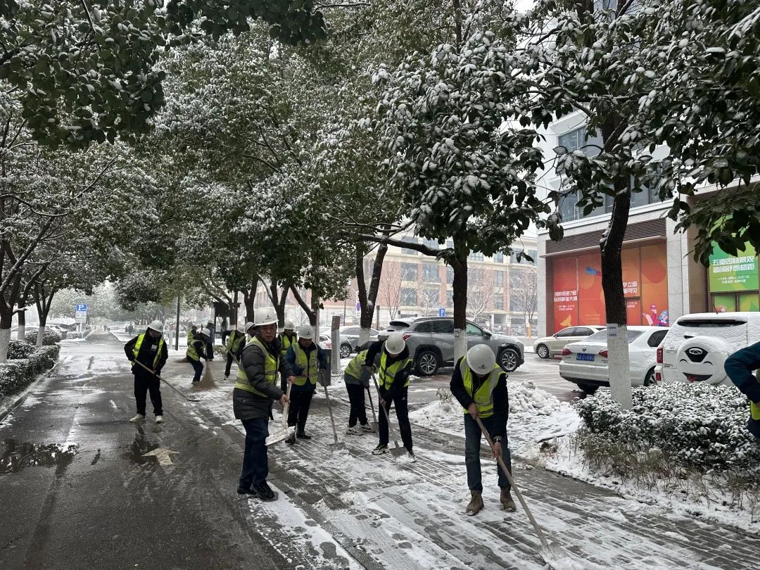 合肥瑤海YH202307地塊項(xiàng)目全體管理人員開展義務(wù)清雪,助力城市除冰掃雪清障活動(dòng),對(duì)以項(xiàng)目為中點(diǎn)向兩邊輻射1公里范圍內(nèi)的裕溪路路面積雪進(jìn)行清掃。