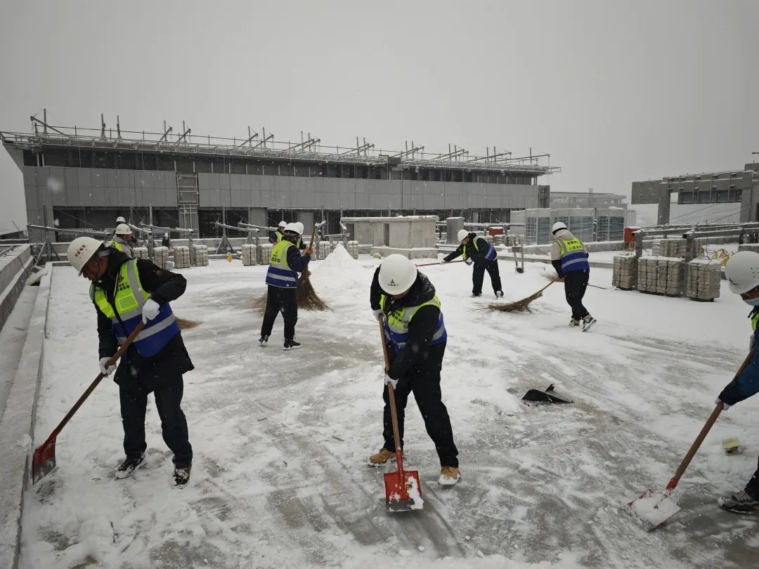 中科院臨床研究醫(yī)院項(xiàng)目施工現(xiàn)場(chǎng)被積雪覆蓋,為確保項(xiàng)目生產(chǎn)正常進(jìn)行,及時(shí)消除安全隱患,項(xiàng)目職工自發(fā)行動(dòng),拿起掃把、鐵鍬清掃積雪。