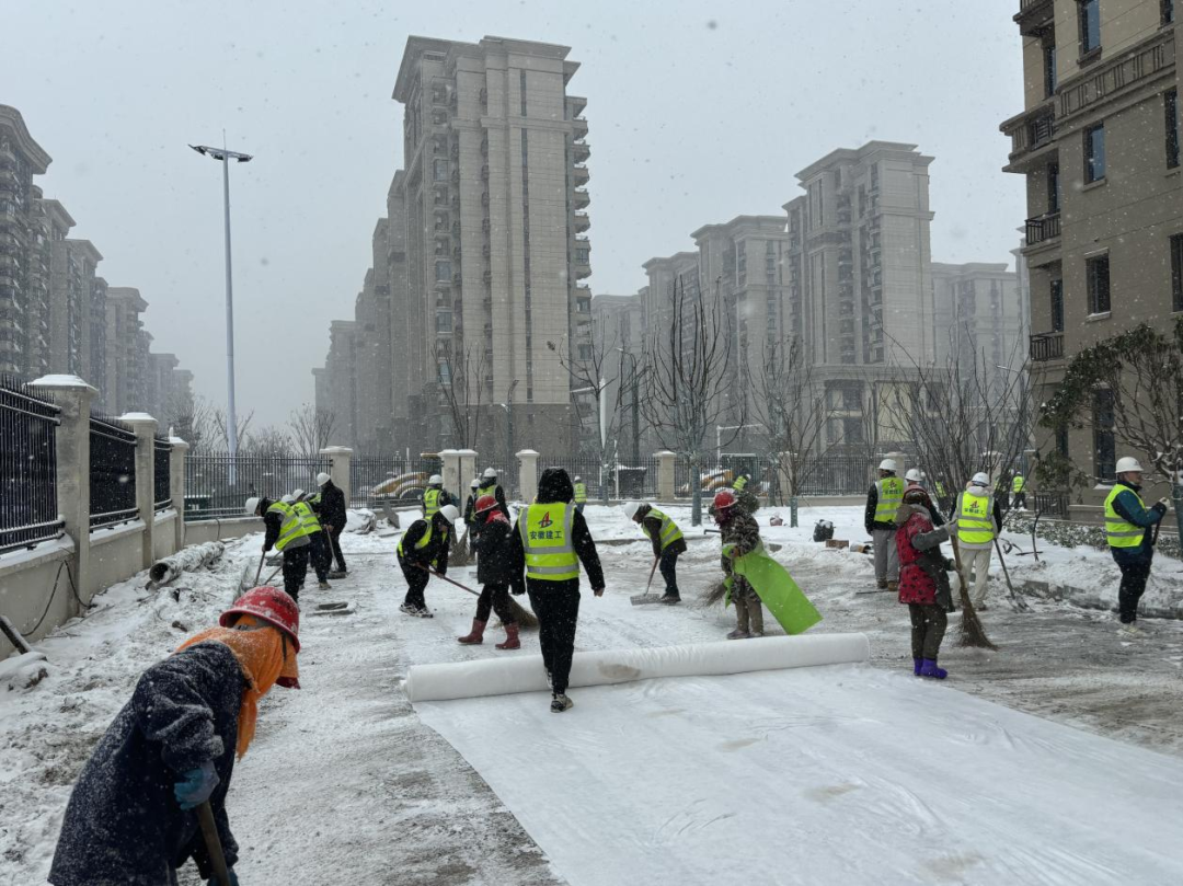 潭沖河家園項(xiàng)目組織黨員及40余名管理人員不畏嚴(yán)寒,迅速行動(dòng),清理項(xiàng)目周邊積雪,確保周邊道路通暢。