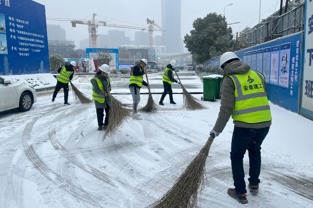 蜀山經(jīng)濟(jì)產(chǎn)業(yè)園建設(shè)項(xiàng)目現(xiàn)場(chǎng),為保障項(xiàng)目的施工進(jìn)度和現(xiàn)場(chǎng)的施工安全,全體管理人員都參與到清掃施工板面積雪的活動(dòng)中。