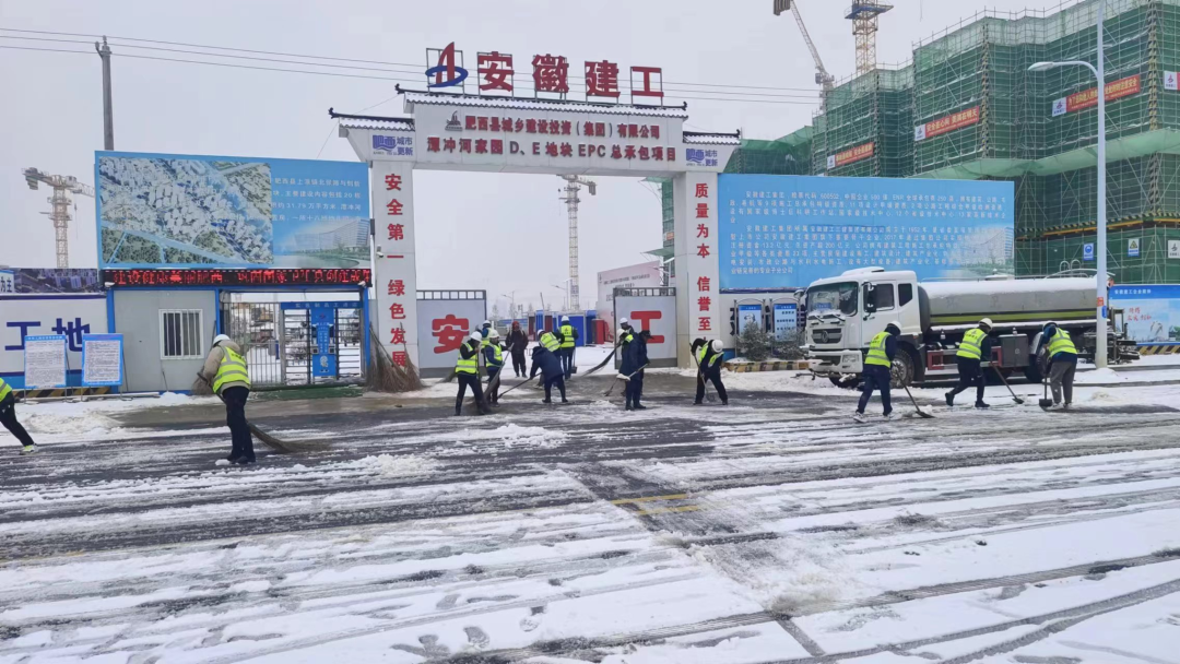 安徽(合肥)創(chuàng)新法務(wù)區(qū)項(xiàng)目組織全體管理人員清掃項(xiàng)目出入口及項(xiàng)目?jī)?nèi)部道路上的積雪,為項(xiàng)目施工安全提供堅(jiān)強(qiáng)保障。