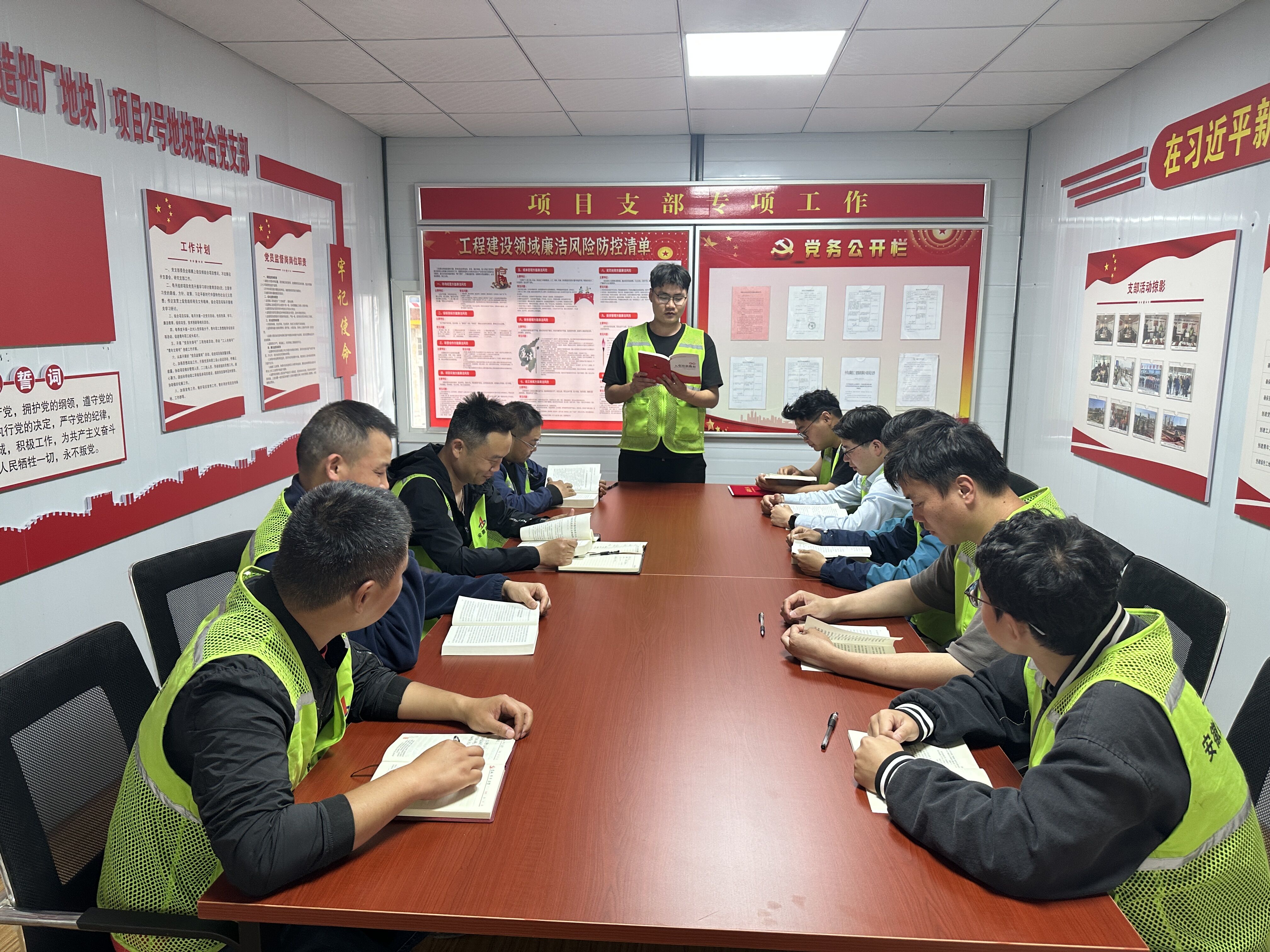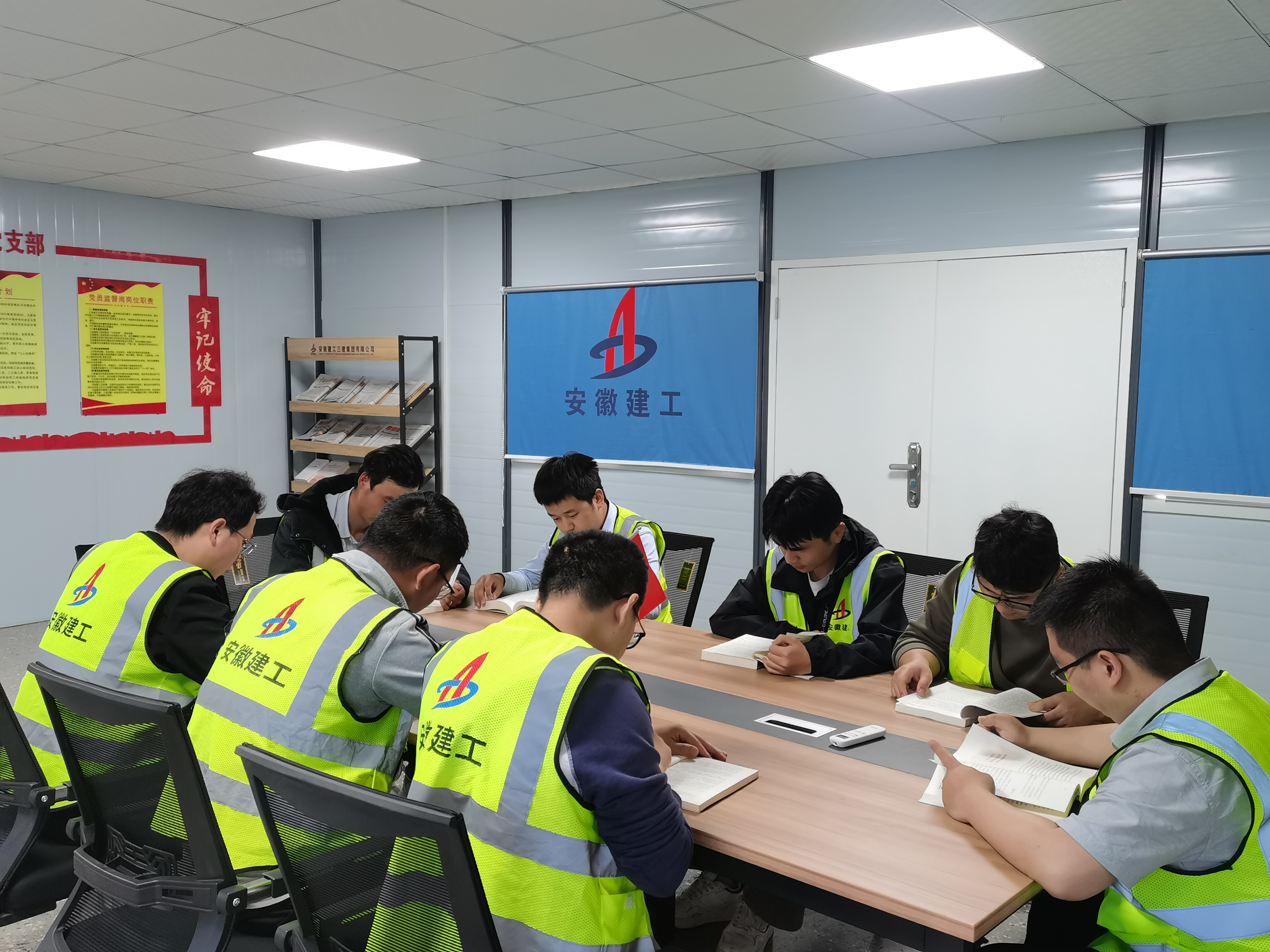 安徽省引江濟(jì)淮(蜀山區(qū)小廟段)安置區(qū)H、K地塊工程施工項(xiàng)目黨員帶領(lǐng)入黨積極分子及部分青年骨干在項(xiàng)目黨員活動(dòng)室學(xué)習(xí)《習(xí)近平談治國(guó)理政》等相關(guān)書(shū)籍。