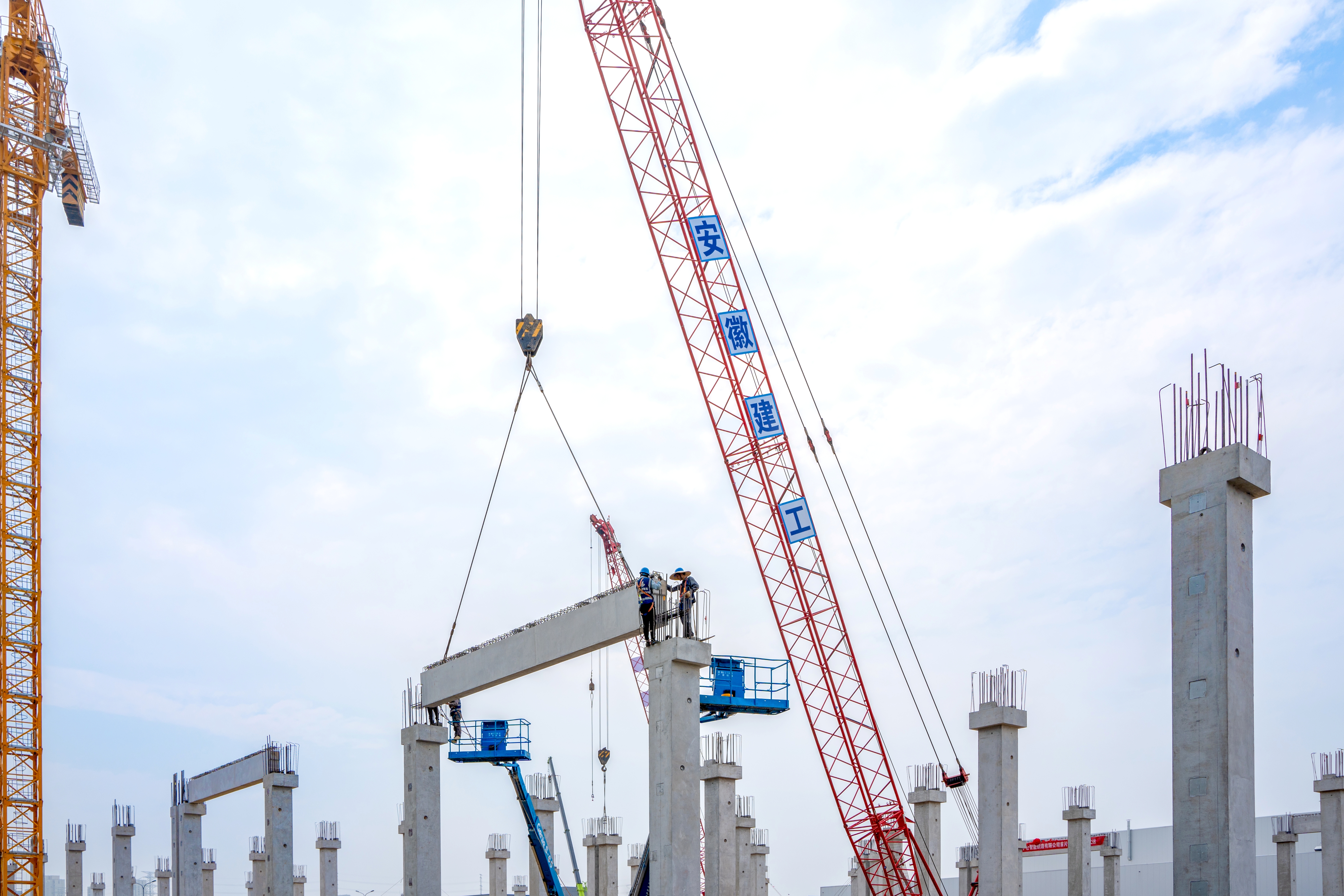 高質(zhì)量 高效率丨大眾科技三期項(xiàng)目首批六根預(yù)制梁成功吊裝
