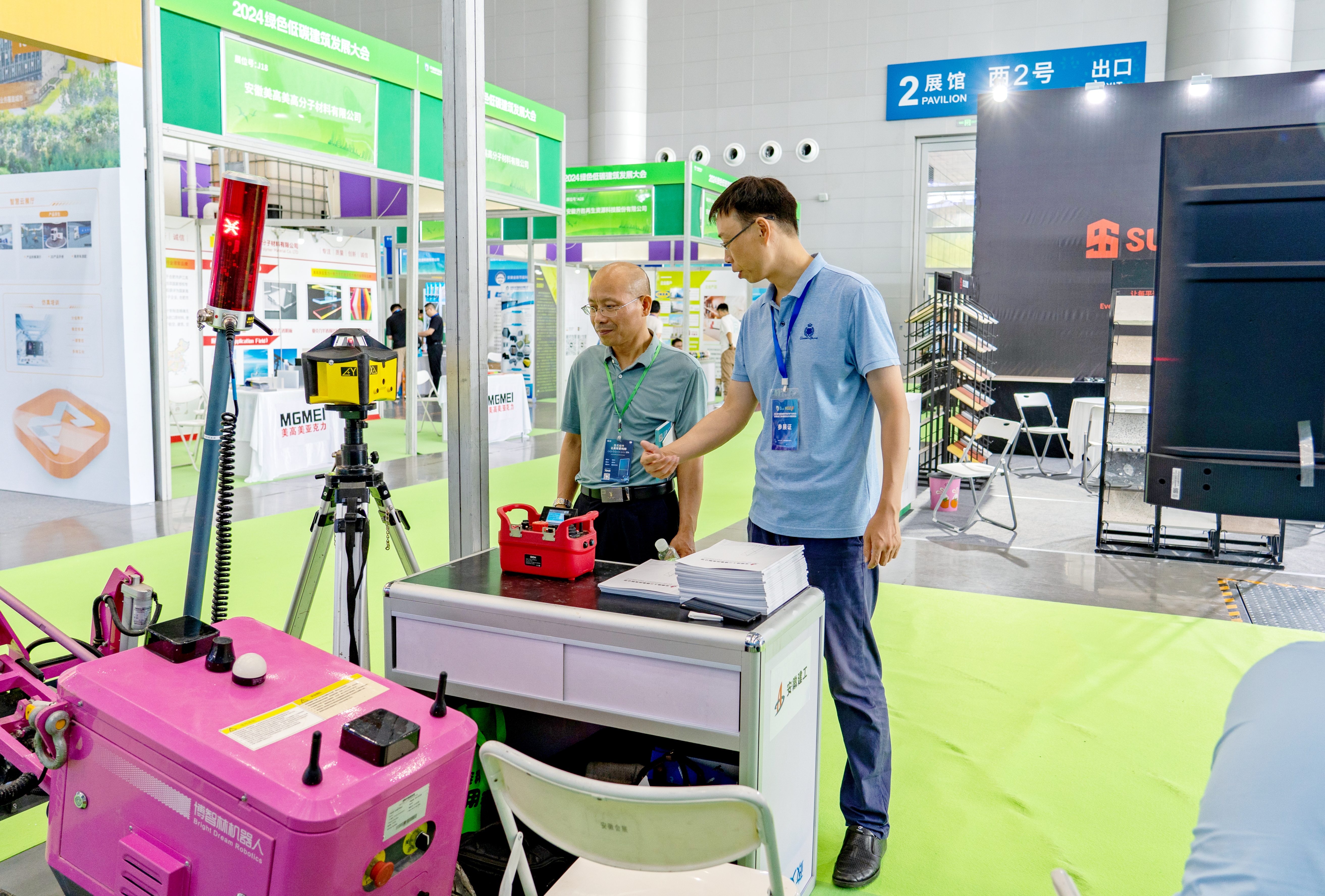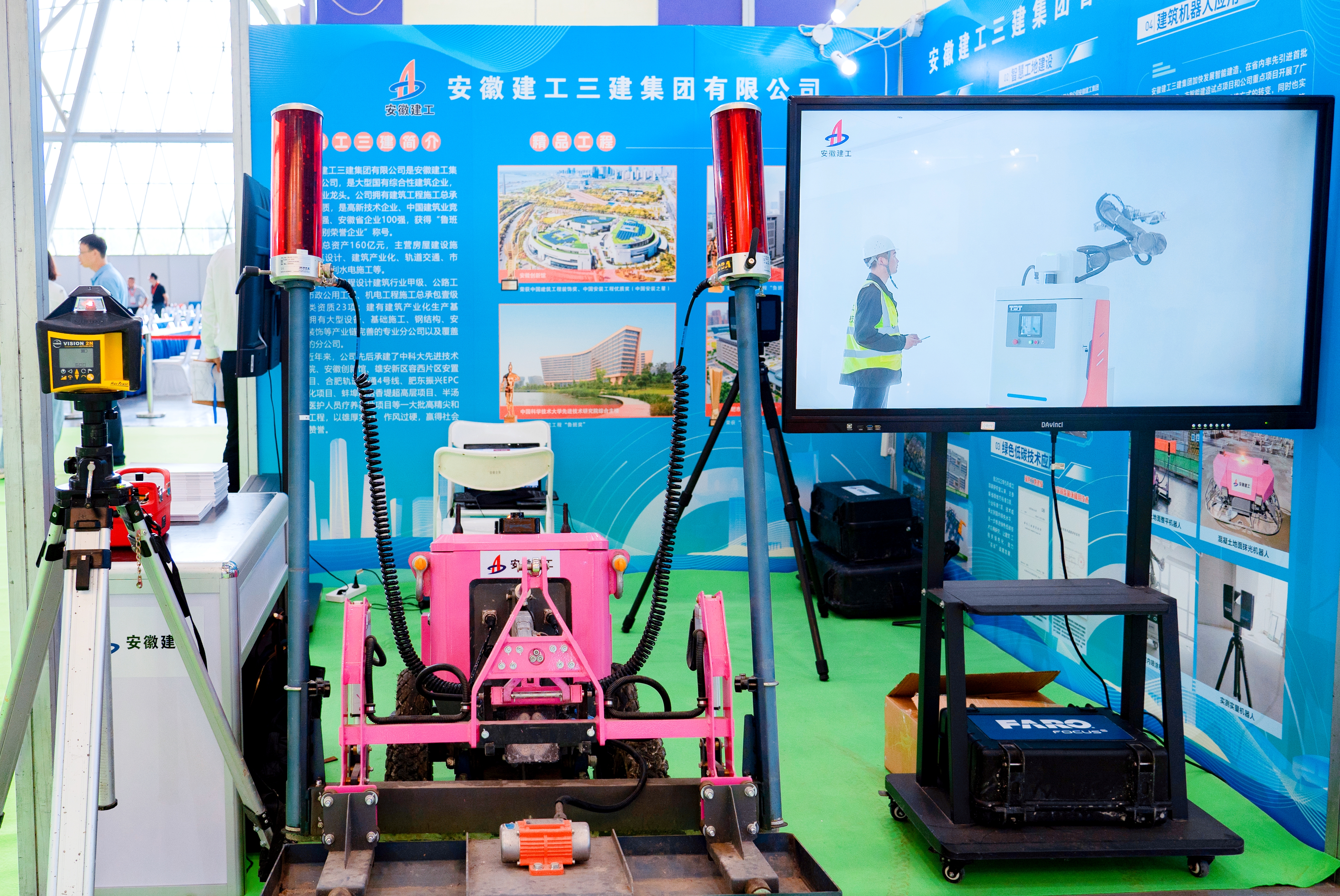 期間,通過宣傳片展播、展板介紹、宣傳冊發(fā)放和現(xiàn)場講解、機器人實物展示等多渠道,全方位展示建工三建在智能建造領域的發(fā)展成果,包括BIM技術應用、智慧工地建設、綠色低碳技術應用以及建筑機器人應用等,其中混凝土整平機器人和實測實量機器人的出現(xiàn)備受現(xiàn)場觀眾的關注,紛紛上前了解機器人工作原理和應用情況。
