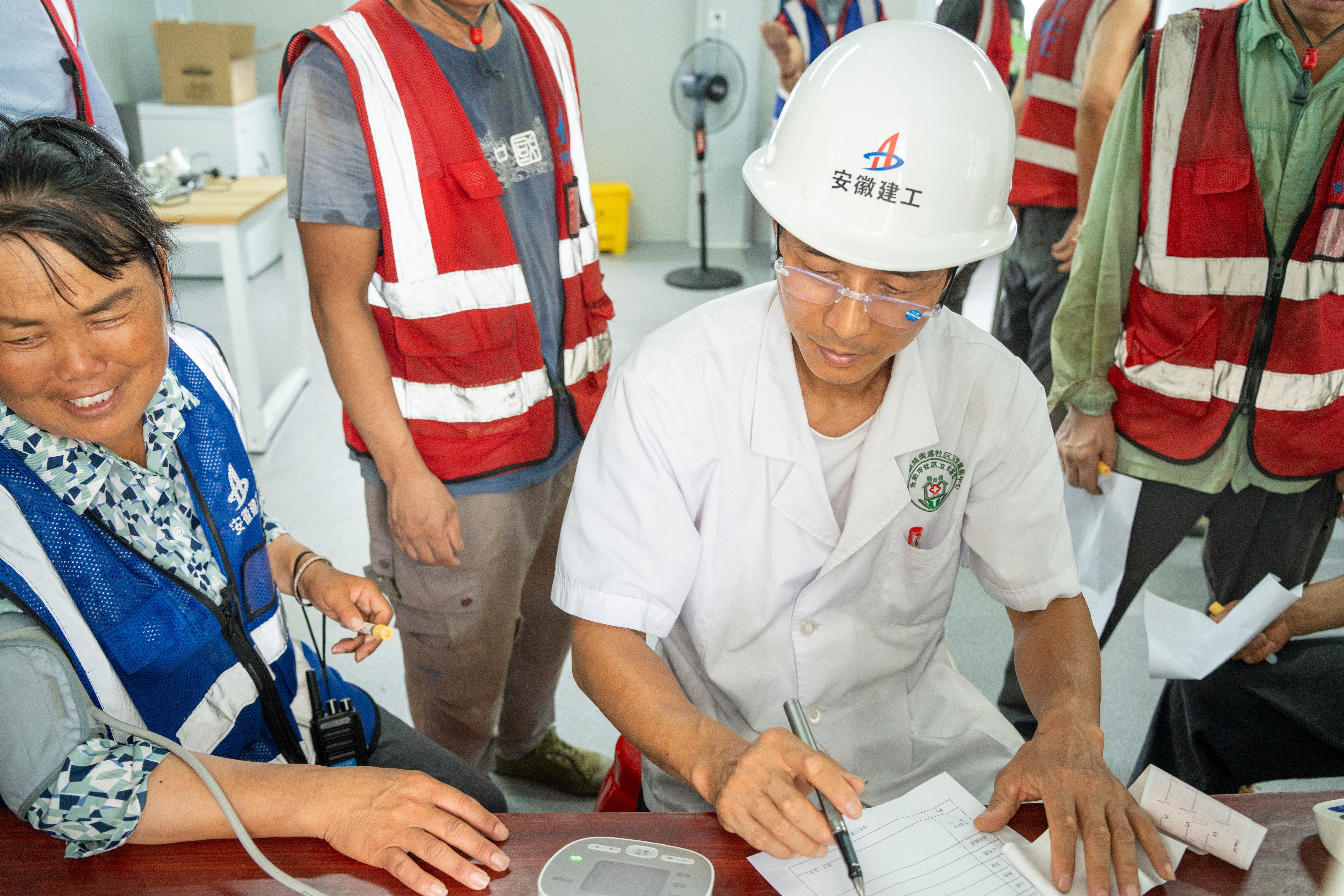 工人是項目建設(shè)的中流砥柱,他們的健康至關(guān)重要。當(dāng)下正值酷暑時節(jié),高溫給一線工人的身體健康帶來了嚴(yán)峻挑戰(zhàn)。工地現(xiàn)場,工友們在現(xiàn)場管理人員的有序組織下排起了長長的隊伍,醫(yī)護(hù)人員為他們進(jìn)行了身高、體重、血壓、血脂、血糖、心電圖等全面細(xì)致的檢查。醫(yī)護(hù)人員耐心地為每位工友解答疑問,還叮囑他們在高溫環(huán)境下作業(yè)要時刻謹(jǐn)記防暑降溫要點,傳遞了滿滿的愛與關(guān)懷。