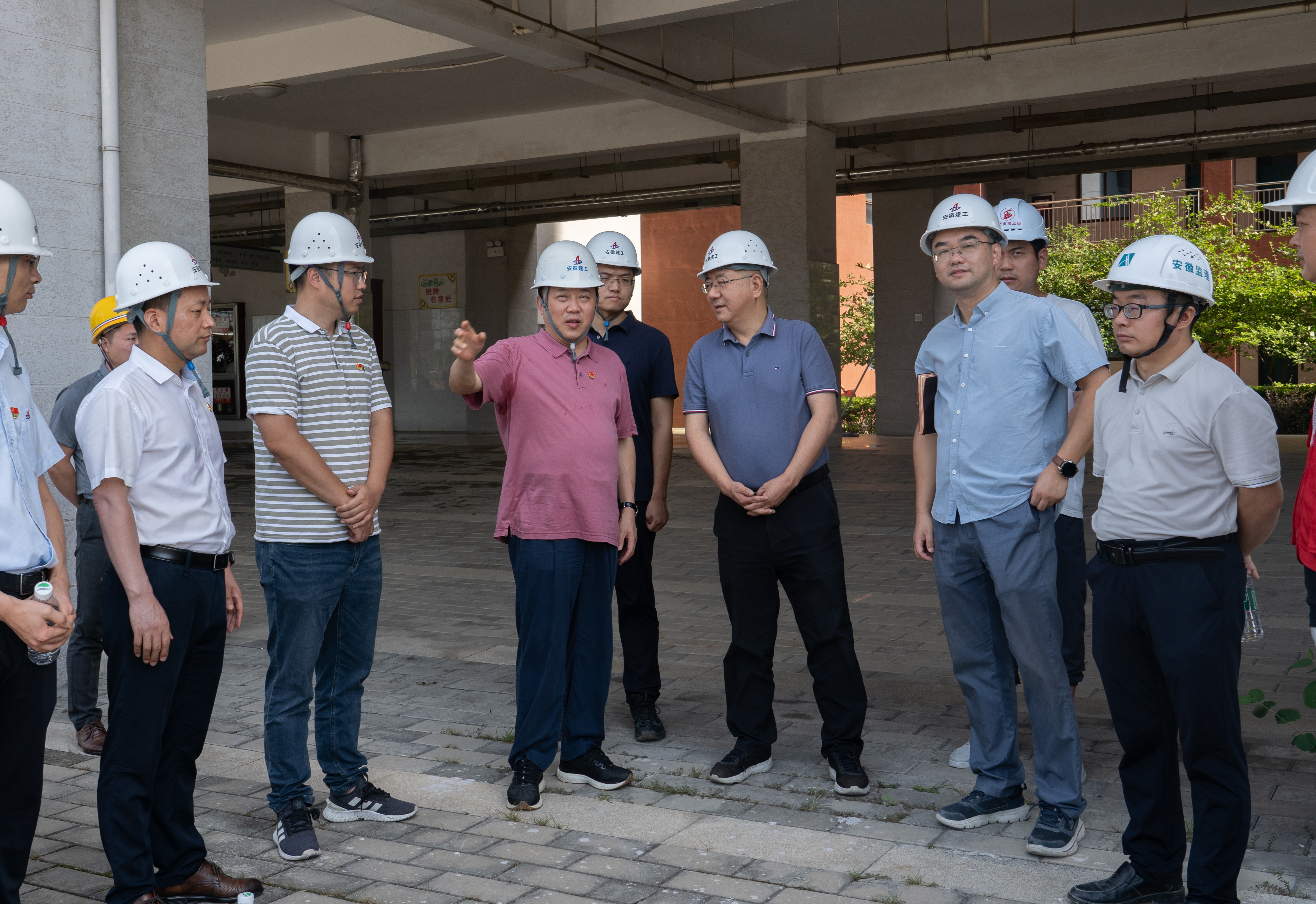 7月23日,合肥市重點(diǎn)工程建設(shè)管理局黨組成員、副局長(zhǎng)鄭浩一行到合肥市第十中學(xué)建筑外立面改造項(xiàng)目調(diào)研。合肥市重點(diǎn)局機(jī)關(guān)黨委直屬第三支部書記、公益分局局長(zhǎng)唐歡,公司黨委書記、董事長(zhǎng)何洪春等參加調(diào)研。