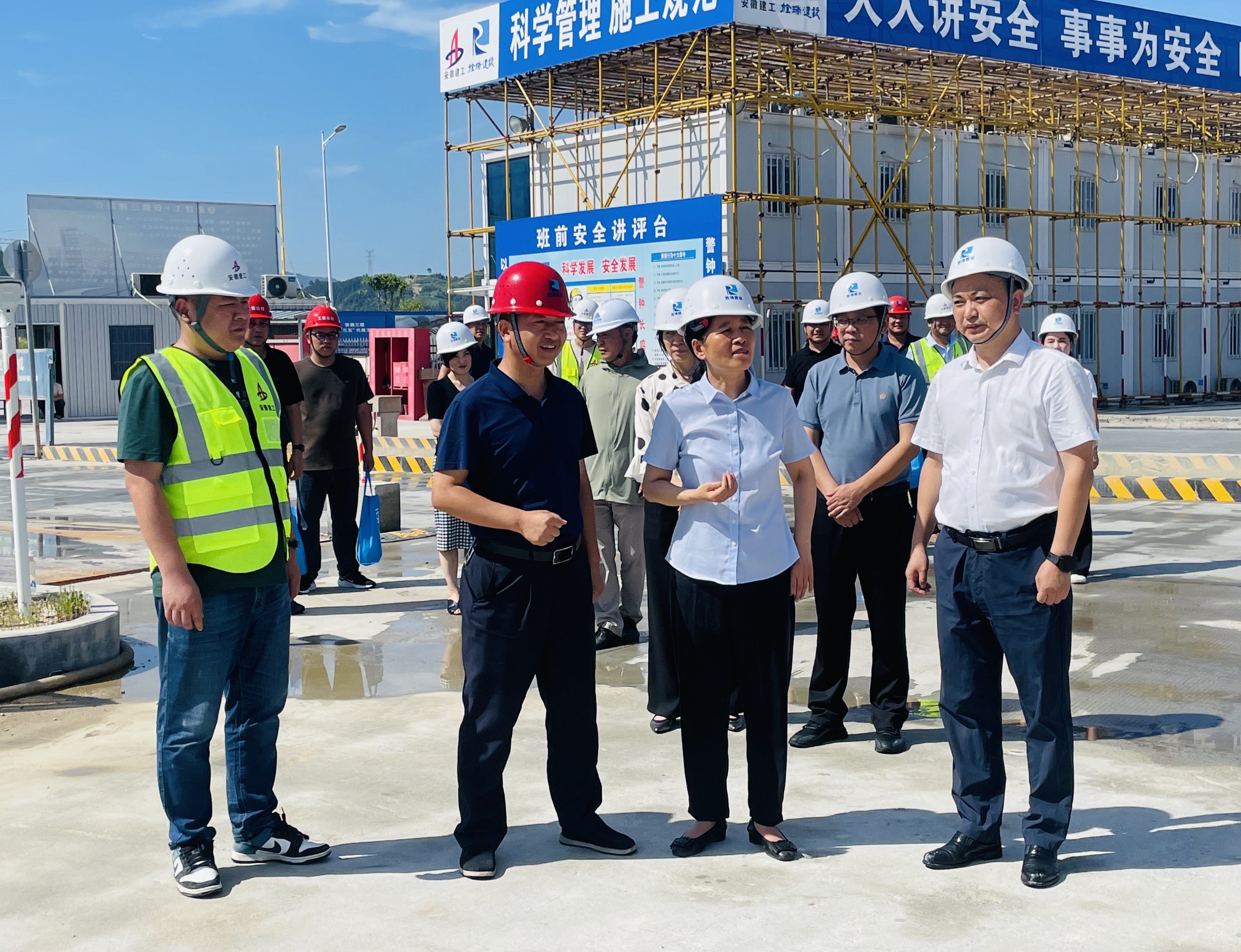 7月24日,旌德縣委書記吳忠梅一行到公司承建的旌德縣承接長(zhǎng)三角一體化產(chǎn)業(yè)園建設(shè)項(xiàng)目(二期)開展“送清涼”慰問活動(dòng),為奮戰(zhàn)在高溫下的建設(shè)者們送去關(guān)懷。旌德經(jīng)開區(qū)黨工委書記、管委會(huì)主任傅世恩等參加。