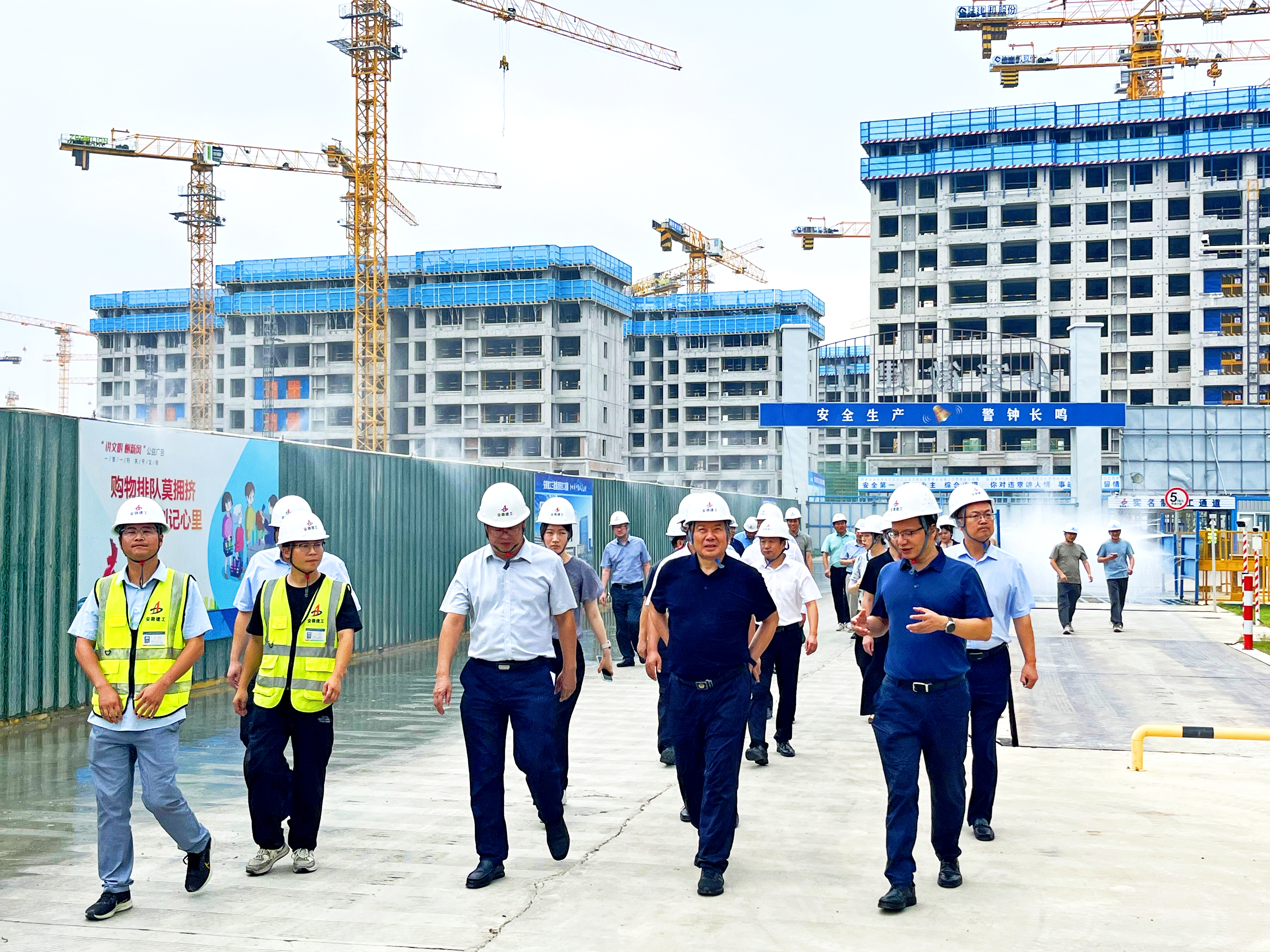 9月12日下午,安徽省第三安全生產(chǎn)督察組組長(zhǎng)張海閣率隊(duì)赴長(zhǎng)豐縣紫桐苑一期項(xiàng)目C區(qū)施工現(xiàn)場(chǎng)開展安全生產(chǎn)工作督察。長(zhǎng)豐縣委副書記、縣長(zhǎng)李孝鴻,縣委常委、常務(wù)副縣長(zhǎng)丁云朋,副縣長(zhǎng)衛(wèi)涌波,公司黨委副書記、總經(jīng)理谷建偉等參加。