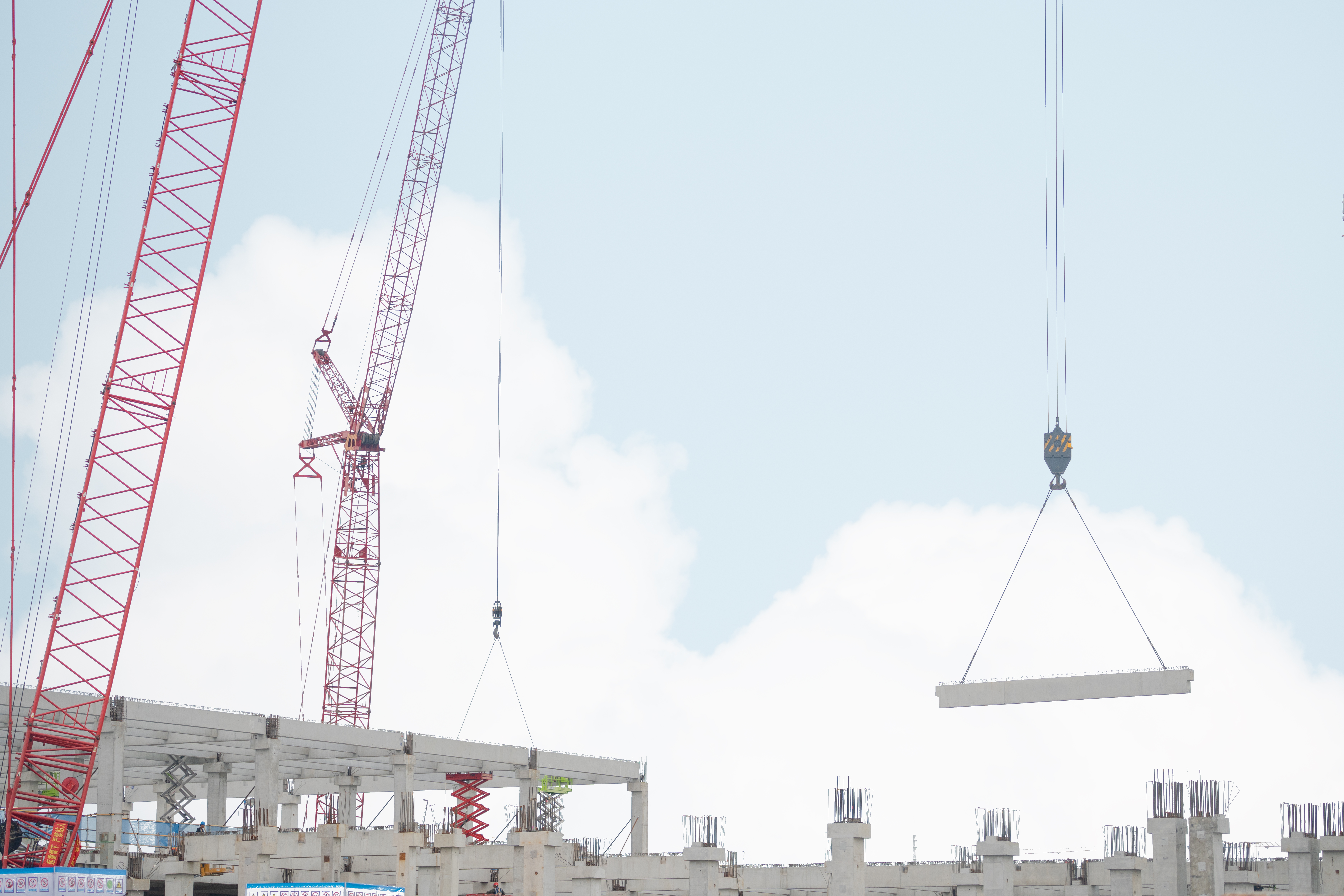 車間一一層地坪施工完成50%,車間二一層地坪施工完畢,車間三一層地坪開始施工;車間一、車間二預(yù)制構(gòu)件除屋面設(shè)備機(jī)房外吊裝完畢;車間三二層預(yù)制柱吊裝完成(81/139)根,二層預(yù)制梁吊裝完成(133/590)跨;三層預(yù)制柱吊裝完成(28/109)根,三層預(yù)制梁吊裝完成(9/498)跨。
