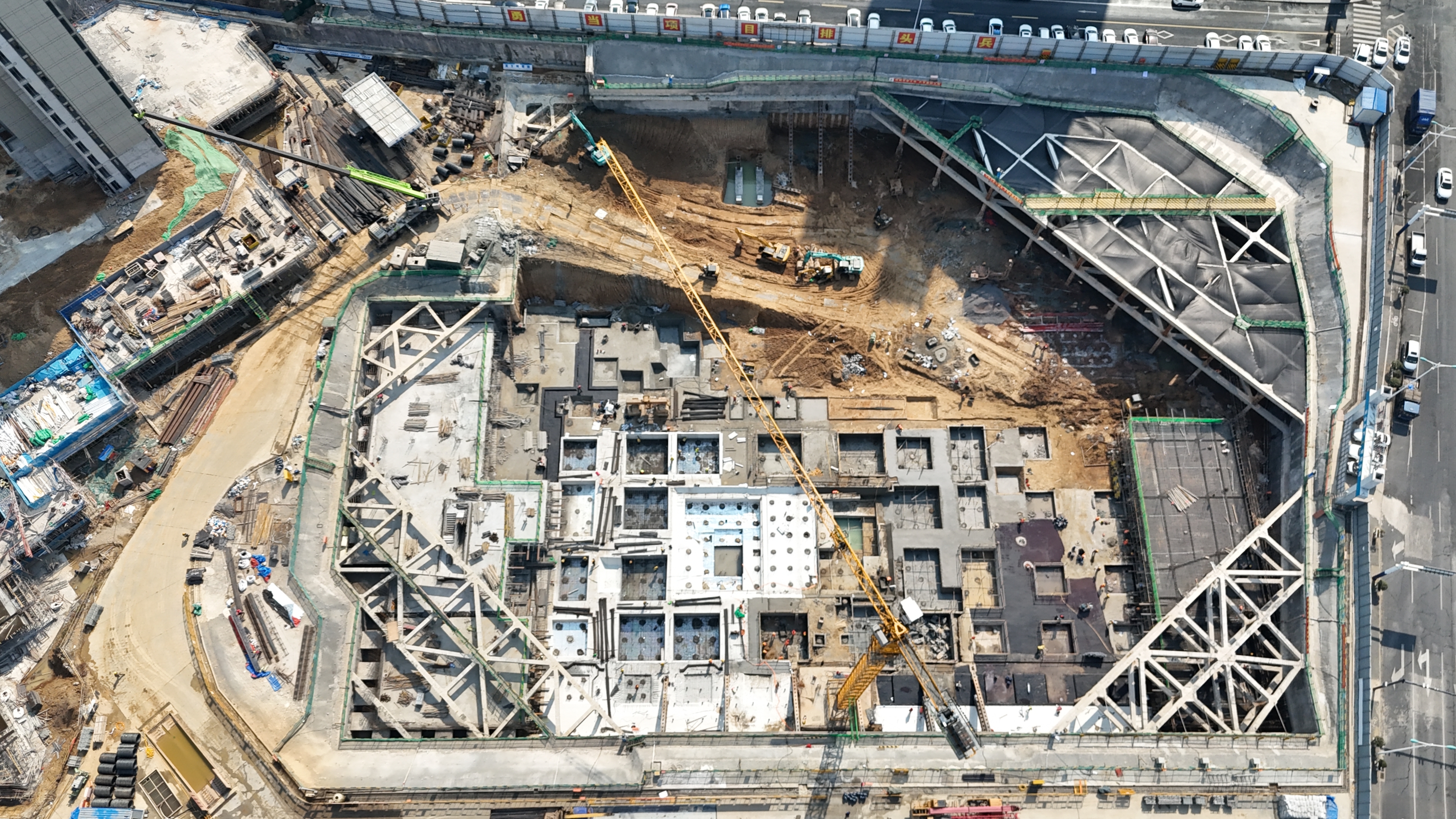 目前,項(xiàng)目正搶抓施工黃金期,組織各分包單位,兩班作業(yè),管理人員全程跟班,共同加緊基礎(chǔ)及地下室結(jié)構(gòu)施工,占地1萬平方米的基礎(chǔ)已完成近80%,負(fù)三層地下室已完成近40%,與住宅交界處地庫已完成近70%。
