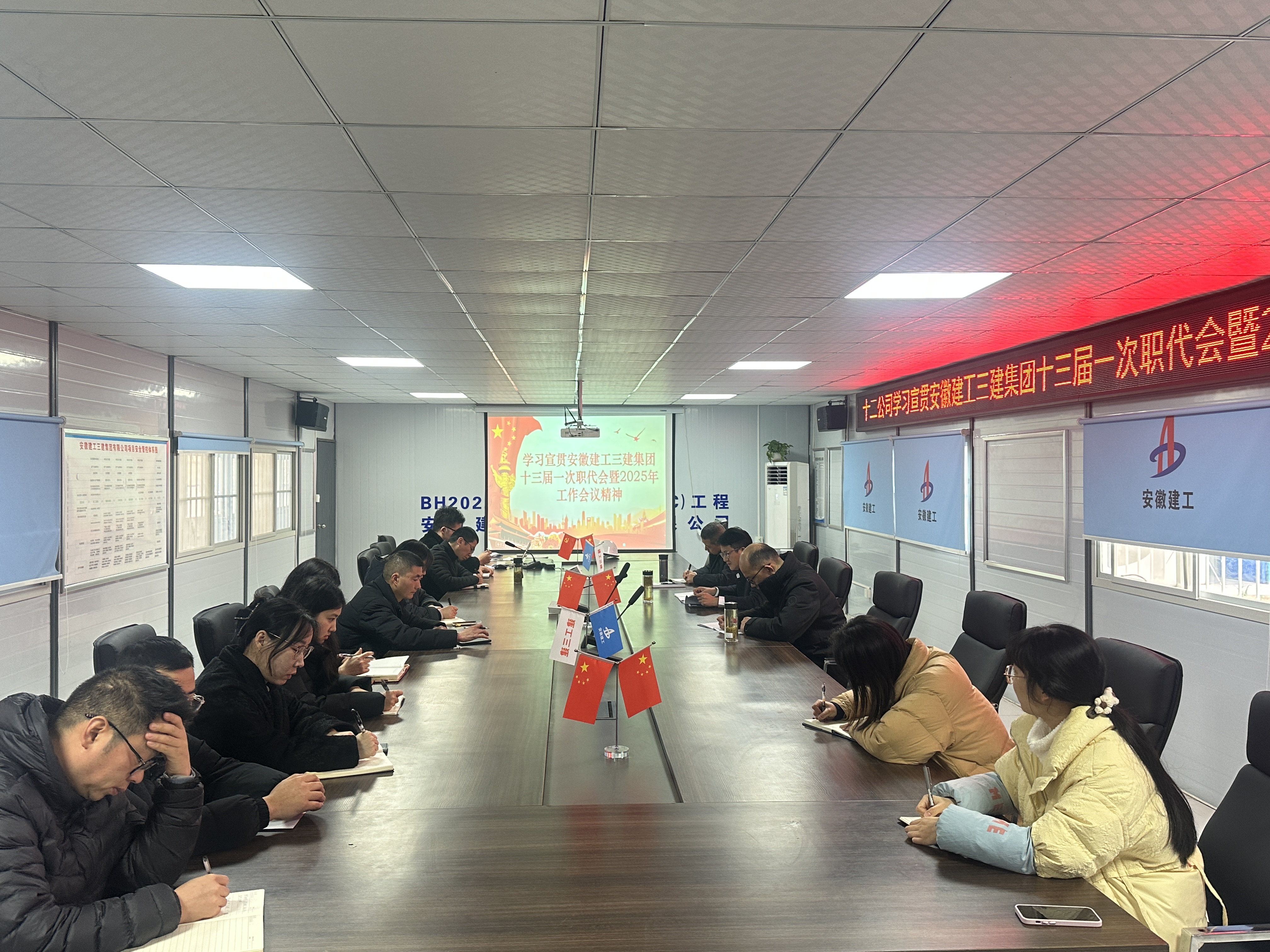 近日,安徽建工集團控股有限公司三屆二次職工代表大會暨2025年工作會議和安徽建工三建集團有限公司十三屆一次職代會暨2025年工作會議勝利召開。會后,建工三建所屬各單位迅速掀起學習宣貫熱潮,確保兩級職代會精神傳達到每一位職工,進一步統(tǒng)一思想、凝心聚力,推動公司高質量發(fā)展,為集團轉型發(fā)展、高質量發(fā)展、大發(fā)展貢獻力量。