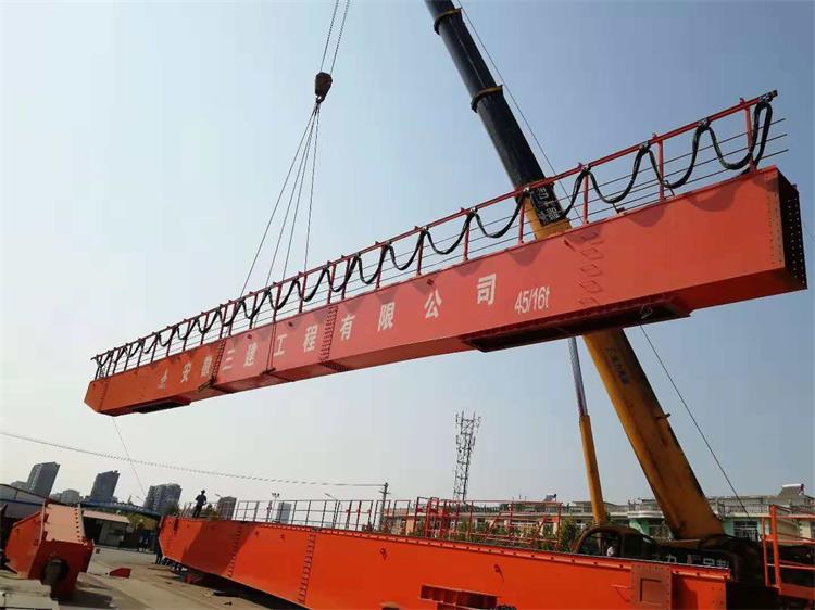 龍門吊在軌道交通項目施工主要用于渣土、周轉(zhuǎn)材料、管片等設(shè)備、施工材料的吊運,是地鐵項目隧道施工不可缺少的運輸設(shè)備。 本次大強路站使用的龍門吊型號為MGD45t/16t-28m-9m+25m A6,雙梁門式,使用跨度為20-28m,主梁總長39.4m。門機主梁采用箱梁焊接結(jié)構(gòu)形式,支腿采用雙鋼結(jié)構(gòu)。安裝期間,堅持“安全至上 生命第一”的方針,項目部細致考慮過往車輛與行人以及安裝小組的安全,認真策劃施工方案,協(xié)調(diào)交通、安裝等各個方面,最終確定對大強路站周圍實施了三個小時的臨時封路,確保安裝過程中的施工安全。