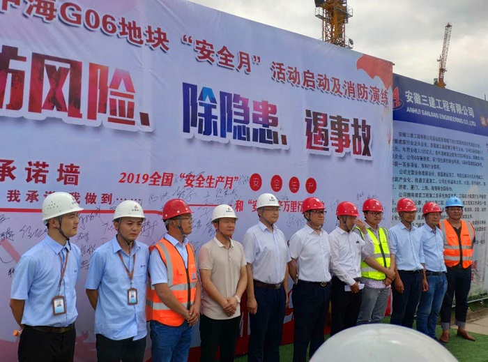 繼第一批公司8個(gè)單位舉行“安全月”啟動(dòng)儀式后,近期,設(shè)備租賃公司、輕鋼龍骨公司、裝飾公司、上海公司等也積極啟動(dòng)“安全月”活動(dòng),將“安全月”活動(dòng)推向深入。6月6日上午,七公司2019年“安全生產(chǎn)月”活動(dòng)啟動(dòng)儀式在南京中海項(xiàng)目舉行,儀式上進(jìn)行了安全宣誓并現(xiàn)場開展消防演練。中海地產(chǎn)副總經(jīng)理鮑壯志、項(xiàng)目總監(jiān)高偉受邀出席了儀式。公司副總經(jīng)理李建成參加了活動(dòng)并講話。