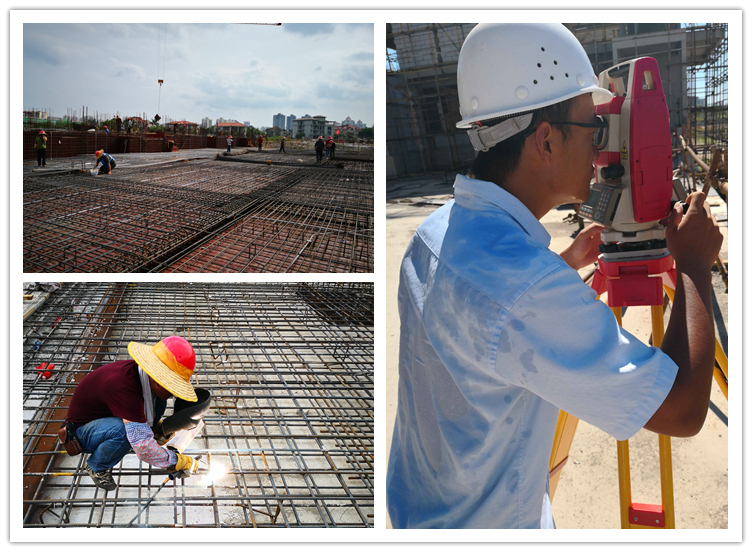 一公司和風福灣項目一線職工頭頂烈日綁扎、焊接鋼筋、抄平、防線,汗水見證奮斗!