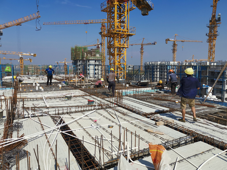 7月25日,在十二公司肥西優(yōu)步學府項目上結構施工現(xiàn)場,為保證計劃工期,項目工人們戰(zhàn)高溫、斗酷暑,正在進行頂板上綁扎鋼筋及水電預埋,揮汗如雨奮戰(zhàn)在第一線