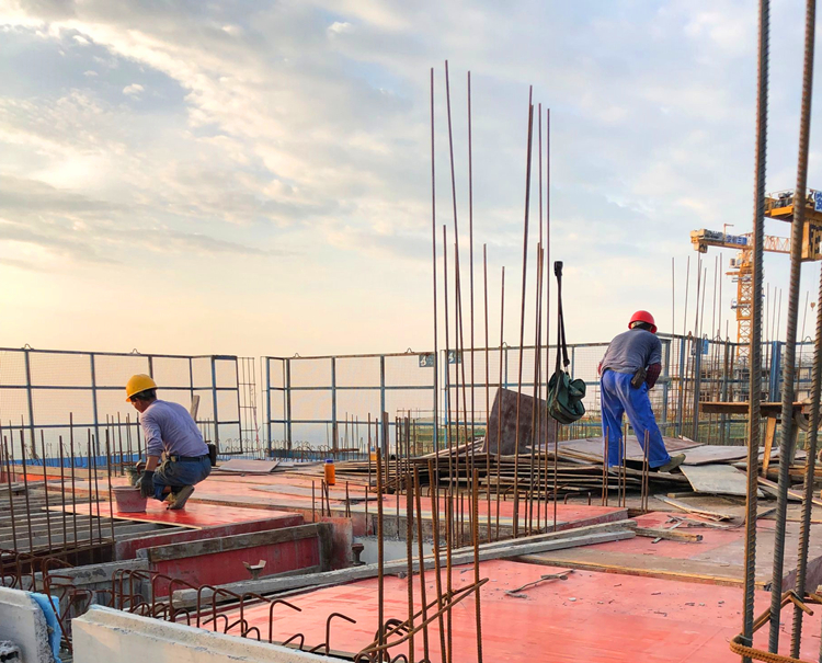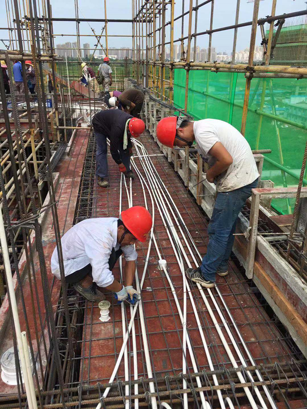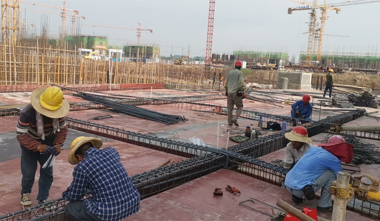 為保證施工工期,二公司、七公司共同承建的濱湖沁園項目鋼筋班組工人冒著高溫天氣綁扎鋼筋,項目管理人員跟班作業(yè)同時進行檢查。為防止管理人員及工人出現(xiàn)高溫中暑現(xiàn)象,項目制定了嚴格的作息時間,上午10:00-下午3:00時間段禁止室外作業(yè),以保證施工人員的身體健康。