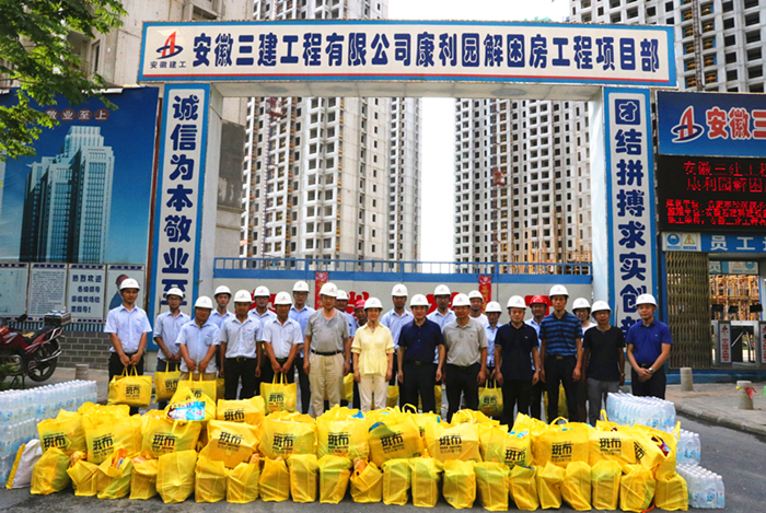 8月6日下午,省住建廳黨組書記、廳長(zhǎng)趙馨群冒著高溫酷暑來(lái)到安徽三建康利園解困房項(xiàng)目,看望和慰問(wèn)奮戰(zhàn)在施工一線的干部職工,為他們送來(lái)防暑降溫用品。趙馨群一行還實(shí)地察看了施工現(xiàn)場(chǎng),對(duì)項(xiàng)目夏季防暑降溫工作做了現(xiàn)場(chǎng)調(diào)研。省住建廳黨組成員、副廳長(zhǎng)吳桂和,省建設(shè)建材工會(huì)主任程德旺,安徽三建公司黨委書記、董事長(zhǎng)左登宏等陪同。