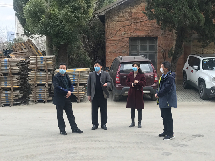 何洪春在輕鋼龍骨公司廠區(qū)了解復(fù)產(chǎn)復(fù)工情況