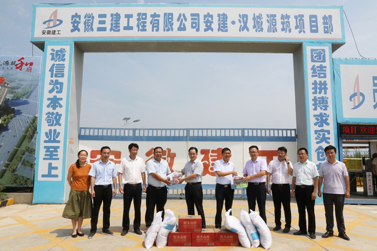 黃麗春、武朝暉、張斌、李家保、陸春濤、李建成、王興明等班子成員先后前往合肥市三中項目、合肥市中心圖書館項目、蜀山區(qū)動力三村改造項目、淮南網(wǎng)云小鎮(zhèn)項目、臨泉銀杏苑安置區(qū)項目、南京中海項目、葛大店幸福城項目、合肥市二院項目、金輝·中梁肥西優(yōu)步學府項目、銀城·旭輝樾溪臺項目等項目工地廠房車間檢查安全生產(chǎn)情況和防暑降溫工作情況,并為他們送去防暑降溫物品。