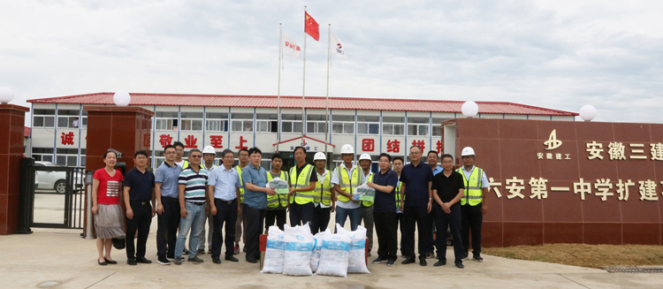 在六安一中擴建項目,公司黨委副書記、總經(jīng)理何洪春與六安一中黨委書記、校長李永江共同為項目“送清涼”,何洪春在與項目管理人員座談中指出,六安一中擴建項目是公司目前的“一號工程”,要求所有管理人員務必要具有高度責任意識,充分發(fā)揚“三建鐵軍”光榮傳統(tǒng),確保建成高質(zhì)量的精品工程,用自己的拼搏奉獻為六安教育事業(yè)添磚加瓦。何洪春還前往了置地瑞禧園項目“送清涼”。