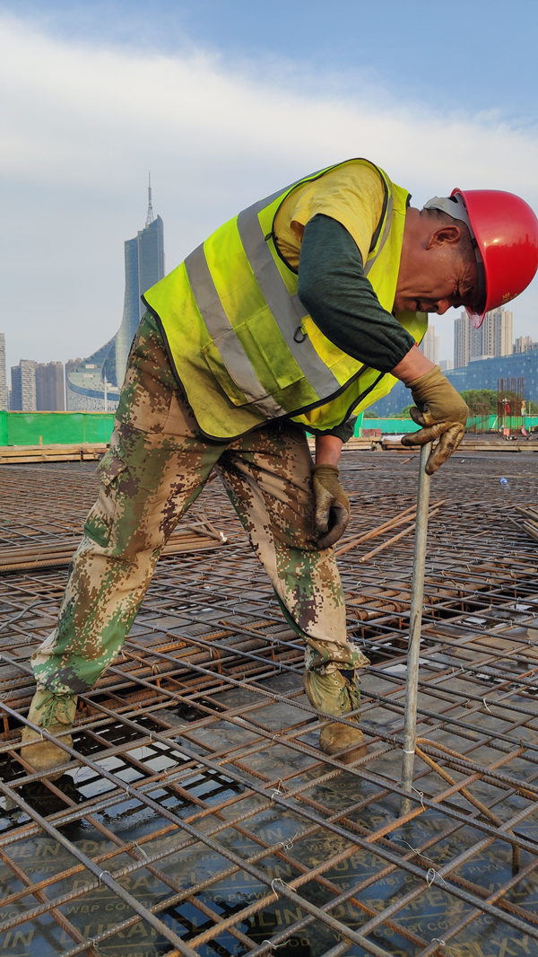 頂板澆筑的時(shí)候,質(zhì)量員吳培從夜里12點(diǎn)一直干到第二天中午12點(diǎn)澆筑完畢。問(wèn)起當(dāng)天的情況,吳培說(shuō)“這次澆筑區(qū)域含型鋼混凝土結(jié)構(gòu),核心筒部位施工難度較大,在現(xiàn)場(chǎng)看著,心里才踏實(shí)?!睘榱舜_保工程質(zhì)量,吳培常常拿著塔尺在炎炎烈日下進(jìn)行控制標(biāo)高,黑里透紅的臉色是戰(zhàn)高溫標(biāo)志色。
