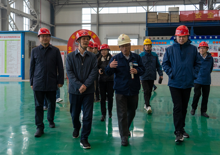 闞立軍一行先后深入建筑工業(yè)公司車間現(xiàn)場、合肥市中心圖書館項目一線察看了解構(gòu)件生產(chǎn)、項目現(xiàn)場施工情況,詳細(xì)聽取了車間、項目生產(chǎn)管理、安全管控等工作情況匯報,并召開了調(diào)研座談會。