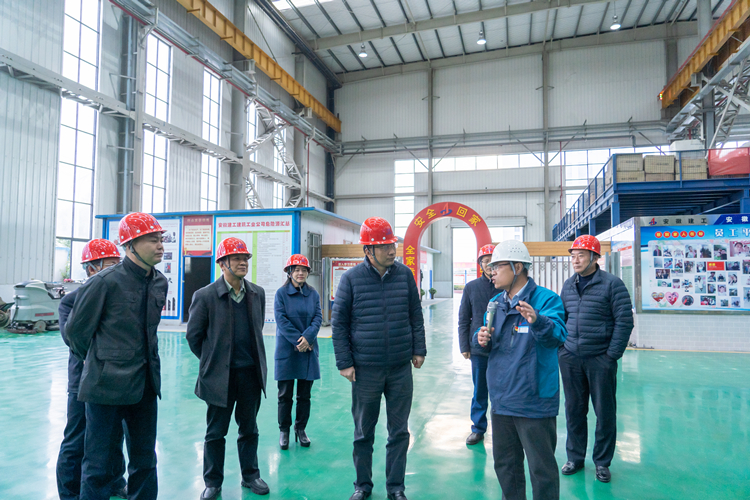 何向陽一行參觀了建筑工業(yè)公司生產(chǎn)車間,詳細了解了裝配式建筑固定模臺生產(chǎn)線、部品部件、軌道交通管片生產(chǎn)流程。在建筑工業(yè)公司綠色建造展廳,何向陽一行通過公司自行研發(fā)的Smart-PC智能化工廠大數(shù)據(jù)電子大屏,查看了企業(yè)部品構(gòu)件生產(chǎn)動態(tài)、精準排產(chǎn)、堆場可視以及設(shè)備安全監(jiān)控、成本自動核算等功能后,對工業(yè)公司在發(fā)展裝配式建筑和智能建造技術(shù)方面取得的成果給予高度贊揚,并表示希望進一步加強政企合作,建設(shè)更為廣闊的合作平臺,實現(xiàn)互利共贏、共同發(fā)展。